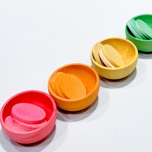 - Take your chosen wooden objects (bowls, acorns, coins, blocks, family pegs, barrels, eggs, etc.), and submerge them just enough to cover the top, about half an inch.