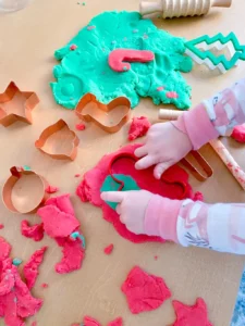 - Remove the Play-doh and knead the dough with your hands until it is no longer sticky.