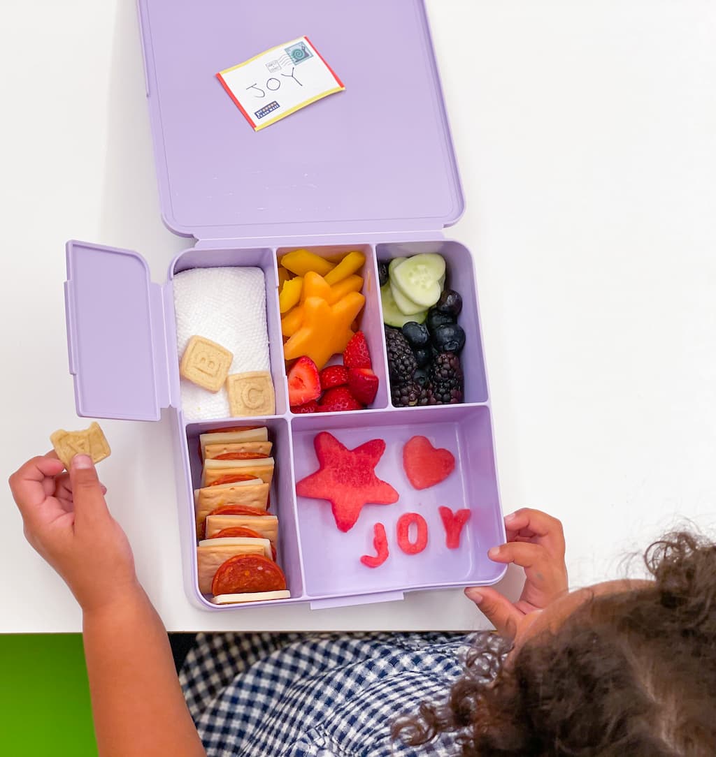 With all the excitement around the first day of school, there is also anxiety. Whether children are going back to school, or experiencing school for the first school time, education during a pandemic lends itself to a lot of ambiguity. With all that in mind, we as parents want to do everything we can to prepare our children, both emotionally and physically for school—that means providing a good energy meal! I never use the words “healthy” or “unhealthy” in regards to food. I use “good energy” because food gives us energy! It is our job as parents to provide our little ones with the food options, but the child should choose how much they eat. Children are in tune with their bodies, and naturally respond to the hormone that tells them when they are full! Pushing them to eat past that point, teaches them to ignore the system ingrained in us to prevent overeating. That being said, I will offer a cookie with lunch and balance it with “good energy” food that will sustain stamina for the day. Help sustain your little one’s stamina with this nutritious bento box lunch they are sure to love!
